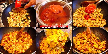 Son olarak yine aynı tavanın içerisine yine az bir miktar yağ koyarız ve kuşbaşı şeklinde doğranmış tavukları ekleriz. İçerisine kekik, kırmızı pul biber ve kimyon koyarız ve yüksek ateşte tavukları pişiririz. İçerisine soya sosu eklemeyi de ihmal etmiyoruz tabi…