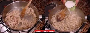 Hindiler 5-10 dakika kadar pişmeye bırakılır ama ara ara da karıştırılmaya devam edilir ki dibi tutmasın. Bu sırada biz, kayın mantarlarını isteğe göre bir büyüklükte ( biz yaklaşık 1cm lik şeritler halinde kestik ) doğrayarak hazır ederiz.