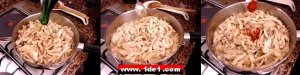 Yarım tatlı kaşığı kadar karabiber ( burada karabiber hoş bir aroma verir ancak fazla konulursa tadı acı olabilir) eklendikten sonra mantarlar da eklenerek karıştırılır.