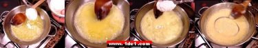Eriyen yağın içerisine 1 çorba kaşığı un konulur ve karıştırılarak yağa yedirilir, sonra bir-iki kaşık un daha konulur ve aynı işlem yapılır sonra da un hafifçe kavrulana kadar karıştırılır ancak bu esnada dibinin tutmamasına çok dikkat etmeniz gerekir.