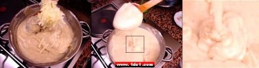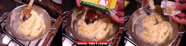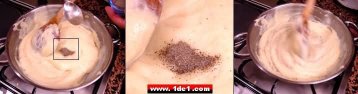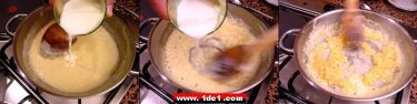 Bu hafif kavrulmuş unun içerisine yarım su bardağı süt yavaş yavaş eklenir ve aynı zamanda da karıştırılır, bir süre sonra süte doyan un karışımının rengi de açılır.