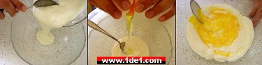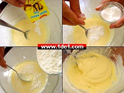 Kabartma tozunu ve tuzu ekleyip biraz daha karıştırın ve içine unu da ekleyin. Hamurun çok sert olmaması gerekiyor, hatta mümkünse biraz cıvık kalsın, gerçi ben ölçüyü kaçırıp unu biraz fazla koymuşum ama yine de güzel oluyor :)