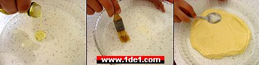 Hazırladığınız hamuru yağlanmış, fırına koyulabilecek cam bir tepsiye yayın ve dolaba atarak 1 saat dinlendirin. Yayma işlemini yağlanmış bir kaşığın dış bükey kısmıyla kolayca yapabilirsiniz.