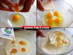 Tartın üzerine eşit şekilde yaydıktan sonra üzerine de 4 yumurta 1 su bardağı süt (belki biraz daha az konulabilir) ve yarım paket kremayı karıştırıp dökün.