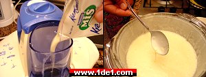 Zaten bu sıcak günlerde de ancak ve ancak soğuk yenebilecek tatlıların tarifi verilebilirdi herhalde (En azından biz tarifi yaptığımızda havalar çok sıcaktı :) Az sonra okuyacağınız tarif yapımı inanılmaz kolay ve hakikaten çok ta lezzetli. Aslında işin “krema” boyutunu katmazsak konulan şekerin azlığı dolayısıyla gayet hafif bir tatlı. Neyse, tarifi oldukça basit aslında: toz şekeri ve yumurta aklarını bir çırpıcı ya da mikser yardımıyla iyice çırpın, öyle ki karışım yoğun ve bembeyaz olsun.