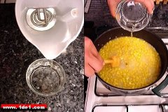 Bunu yağ ile birlikte biraz döndürdükten sonra ıslatmaya bıraktığımız pirinçleri süzüp bu mısırın üzerine döker ve karıştırmaya devam ederiz.