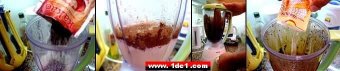 Neyse, gördüğünüz gibi pek bir malzeme gerektirmeyen kolay pastamız sonunda bir Piramit’ i andıracak ve biz de şimdi size "Piramit' in Sırrı" 'nı anlatacağız. İlk olarak yapılması gereken şey sosun hazırlanması. Bunun için bir blender sahibi olsanız iyi olur, tabi onun yerine mikser de kullanabilirsiniz.