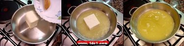 Kısa bir süre daha karıştırıldıktan sonra margarin ufak bir kapta ısıtılır ama kesinlikle kaynatılmaz, ocağın altı olabildiğince kısık bir ateşte tutulmalıdır.