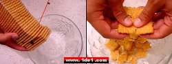 Yağ erirken diğer yanda büyükçe plastik ya da cam bir kap alınır ve bisküvilerimiz bu kabın içerisinde ufak parçalar halinde bölünür. Burada bisküvilerin çok fazla un haline getirilmemesi önerilir, çünkü o halde çok hamurumsu bir hal alabilir ki bu da yerken insanı yorar.
