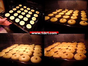 daha sonra da ocağı kapatıp şerbeti soğumaya bırakın. Sakın sıcak şerbeti buzdolabına koymaya kalkmayın, soğuk bir zemin üzerinde ağzı açık bırakmanız kafi. Şekerparenin kurabiyeleri olana kadar o da soğur, zaten çok soğuk olması gerekmiyor ılık olması yeterli. Çünkü yine bir ek bilgi (ben de yeni öğrendim :) eğer kurabiyeler de şerbet de sıcak olursa, tatlı hamur oluyormuş (yani cılkı çıkıyor :). Neyse, dinlendirdiğimiz hamuru avucumuzun içerisinde ceviz büyüklüğünde ve şeklinde yuvarlayıp, üzerine ince bir tabaka halinde yağ sürdüğümüz tepsiye diziyoruz. Aman arkadaşlar sakın siz benim yaptığım hataya düşüp kurabiyeleri çok fazla bastırmayın, çünkü zaten pişirme aşamasında genişleyip tepsiye yayılıyorlar, bu yüzden yayılma payı bırakın...