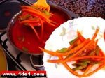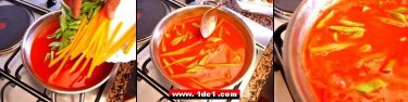 Ocağın altı orta ateşte yakılır ve sosun içine sebzeler atılır, karıştırmaya devam edilir.