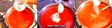 Bu karışıma şeker ve sirke konulur ve tekrar karıştırılır.