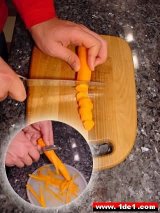 Tabi tüm bu işlemler sırasında örneğin soğanın kavrulması ardından etin ve salçanın eklenerek biraz daha pişirilmesi sırasında sebzeler hazırlanabilir. Bunların belli bir sırası olmamakla beraber biz önce havuçtan başladık. Havucumuzun kabuğu soyulduktan sonra çok kalın ya da çok ince olmayacak şekilde daireler şeklinde dilimlenir.