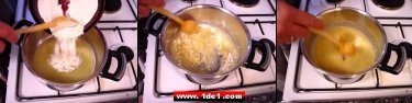 Tamamen eriyen yağ içerisine elimizdeki tüm unu yavaşça dökeriz, ancak bu sırada bir yandan karıştırmayı ihmal etmeyin yoksa unlar top top olur ve bunların düzelmesi çok zordur.